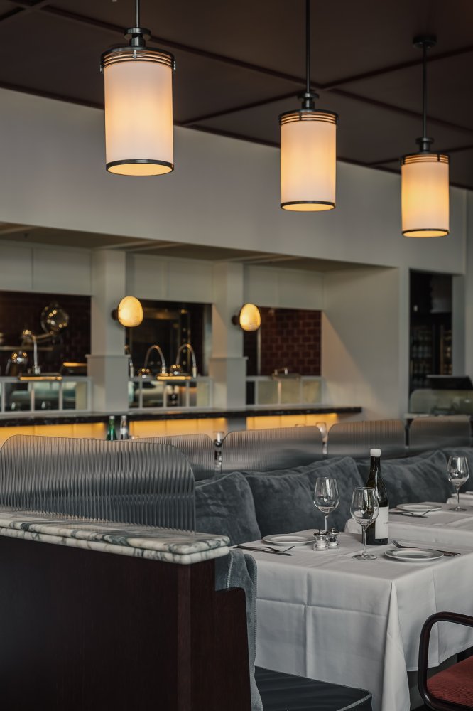 The heart and soul of the restaurant is the open kitchen with rotisserie & grill, where our chefs prepare our well-loved Chicken Morille. Our menu features timeless French bistro favourites, unmissable classics, and, of course, a Grand Dessert. The unexpected mix of 80’s chrome and velvet upholstery, glimmering chandeliers, and linen lampshades makes for a warm atmosphere that makes you question whether you’re in Amsterdam, London, Paris or New York. It’s time to live large at Le Grande George.